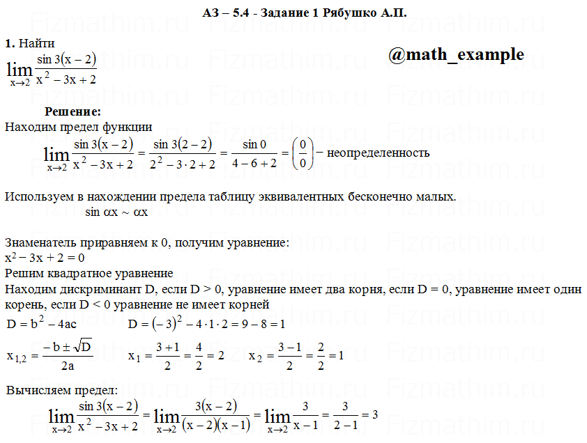 Решенные задания и примеры решений на тему Пределы функций и приложения
