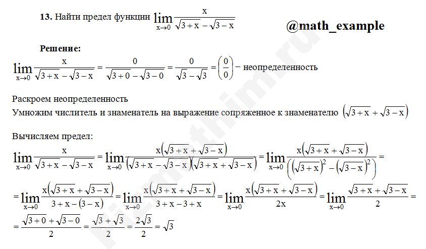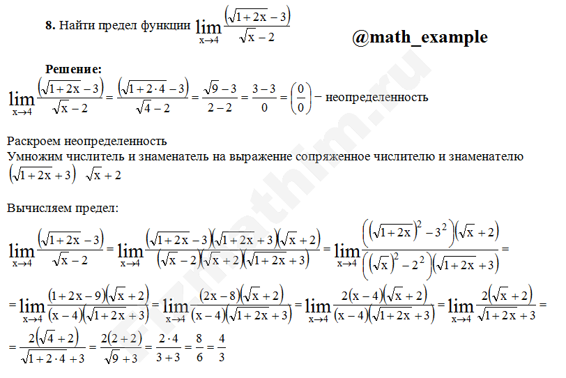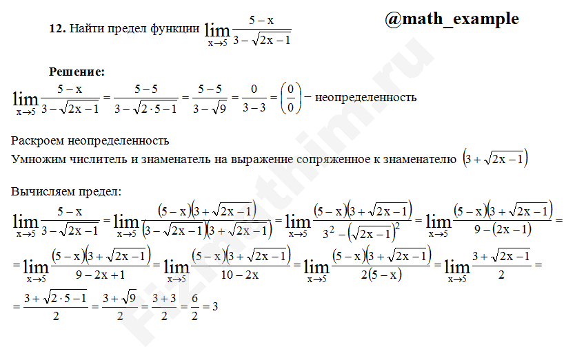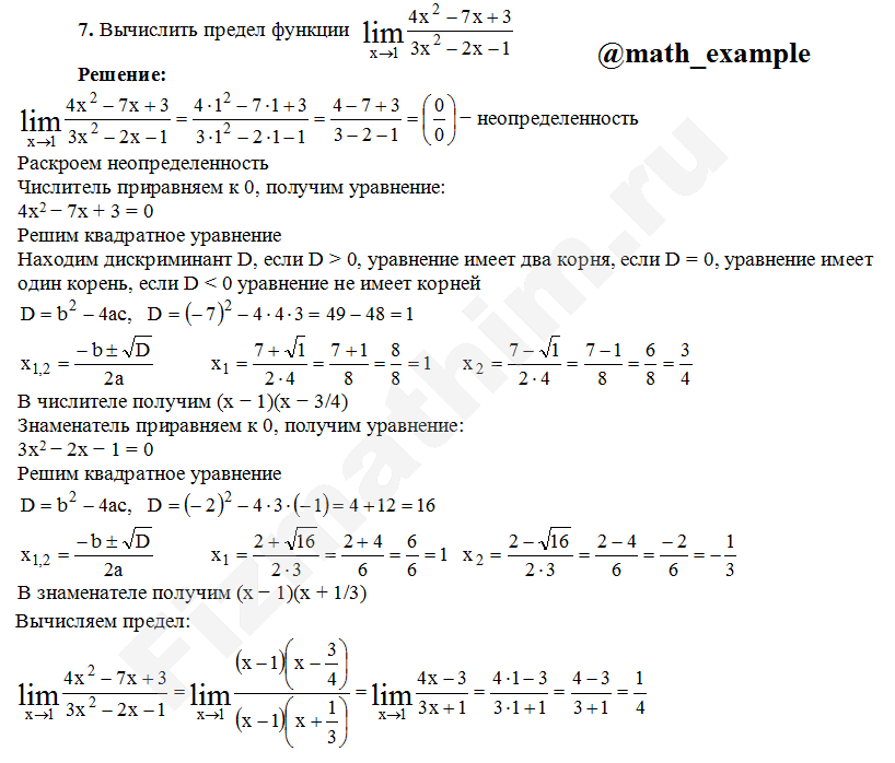 Решение пределов функций примеры решений