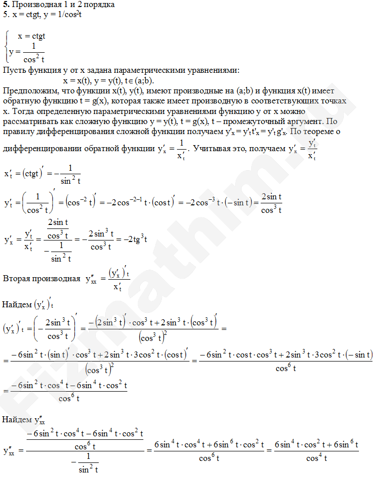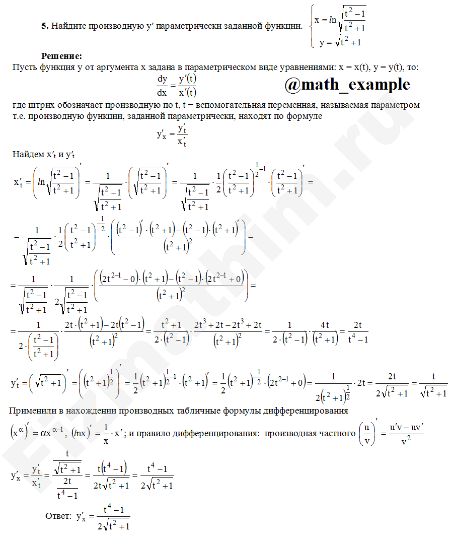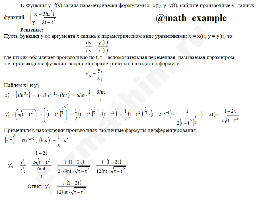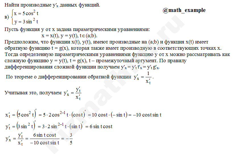 Производная неявной функции, заданной параметрически примеры решенийГлавная » Фото решений » Производные и дифференциалы » Производная неявной функции, заданной параметрически
