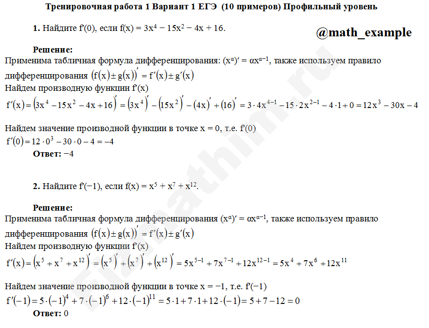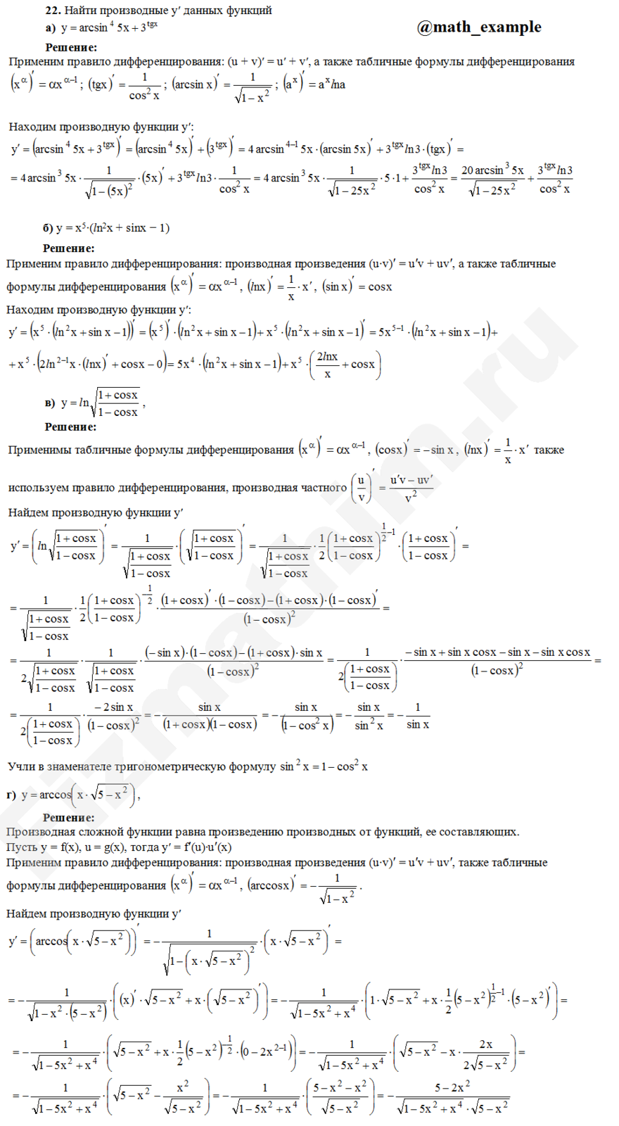 Производные, дифференциалы первого порядка примеры решений
