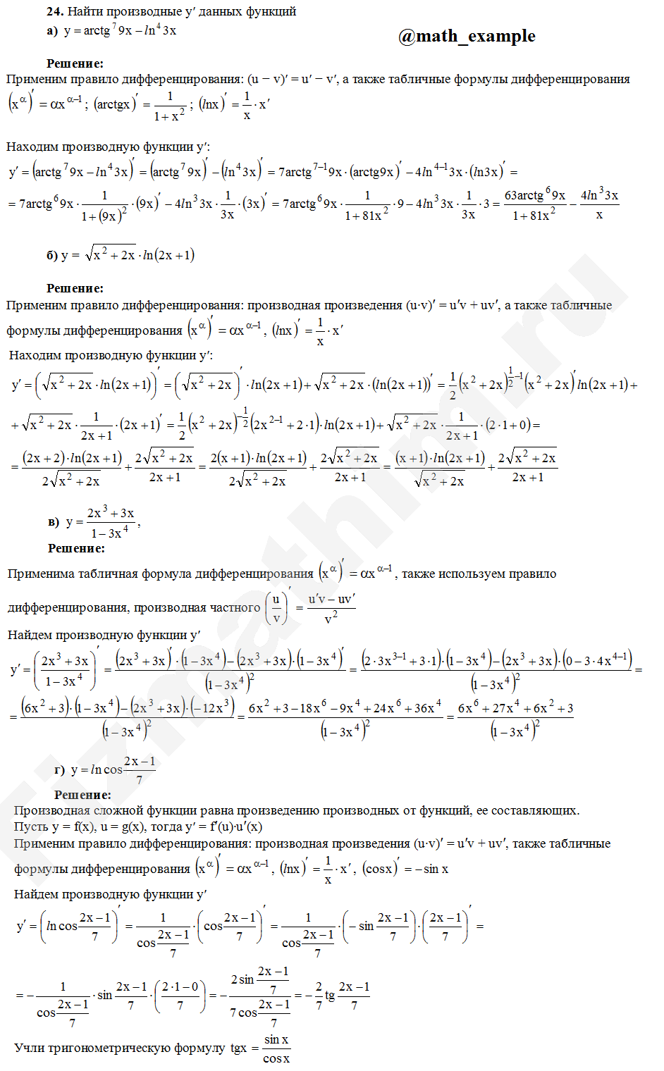 Главная » Фото решений » Производные и дифференциалы » Производные, дифференциалы первого порядка