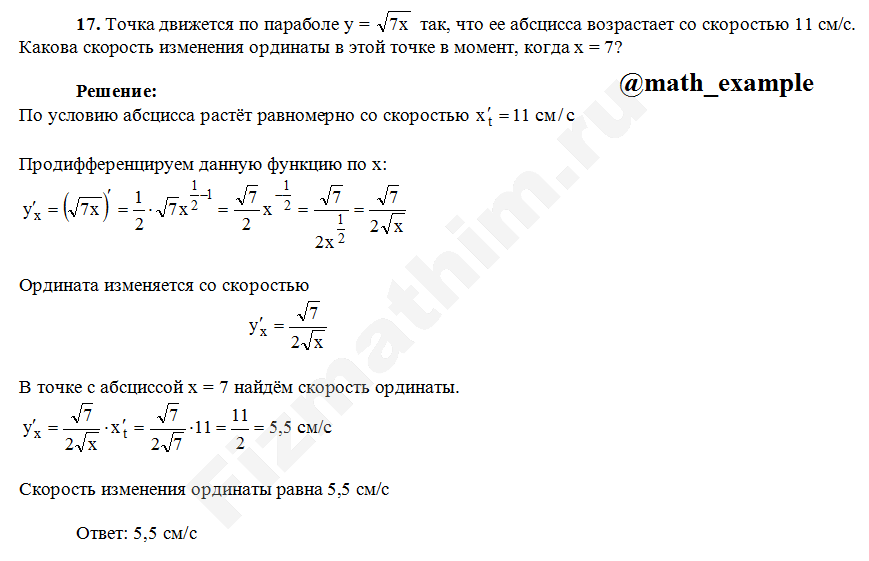 Решенные задания и примеры решений на тему дифференциальное исчисление, приложения