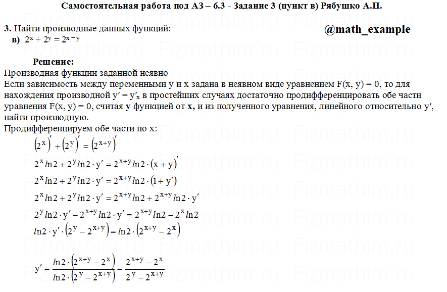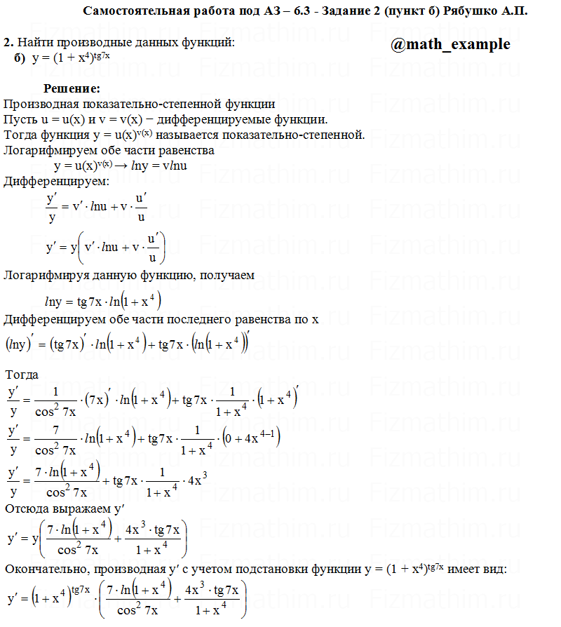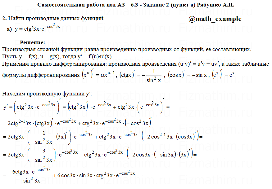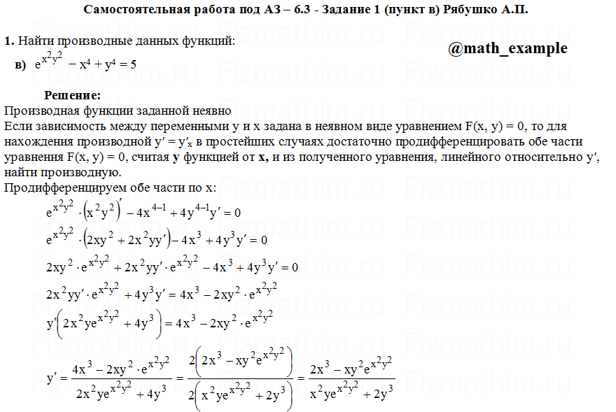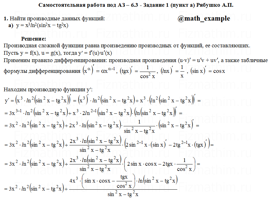 Решенные задания и примеры решений на тему дифференциальное исчисление, приложения