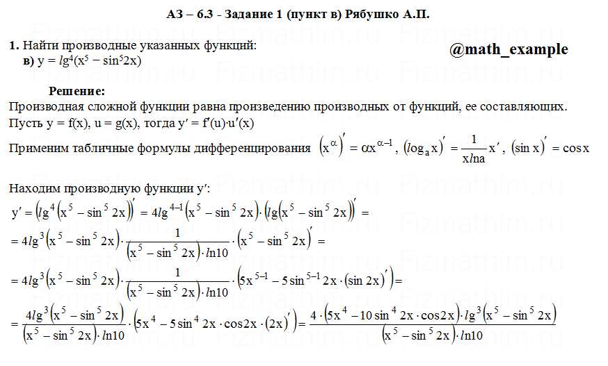 Решенные задания и примеры решений на тему дифференциальное исчисление, приложения