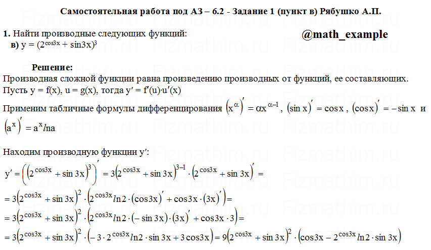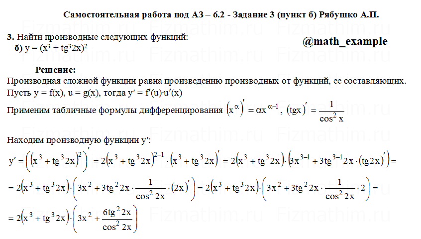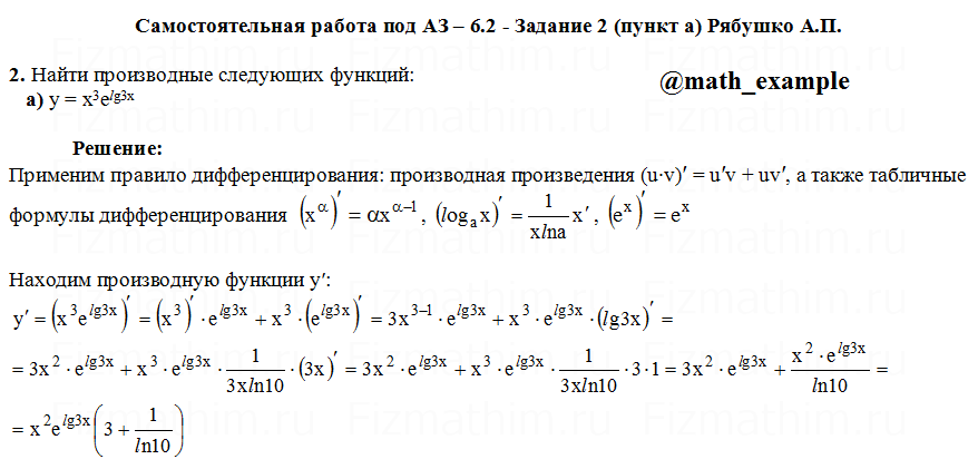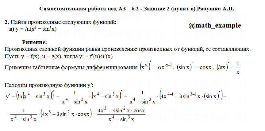 Решенные задания и примеры решений на тему дифференциальное исчисление, приложения