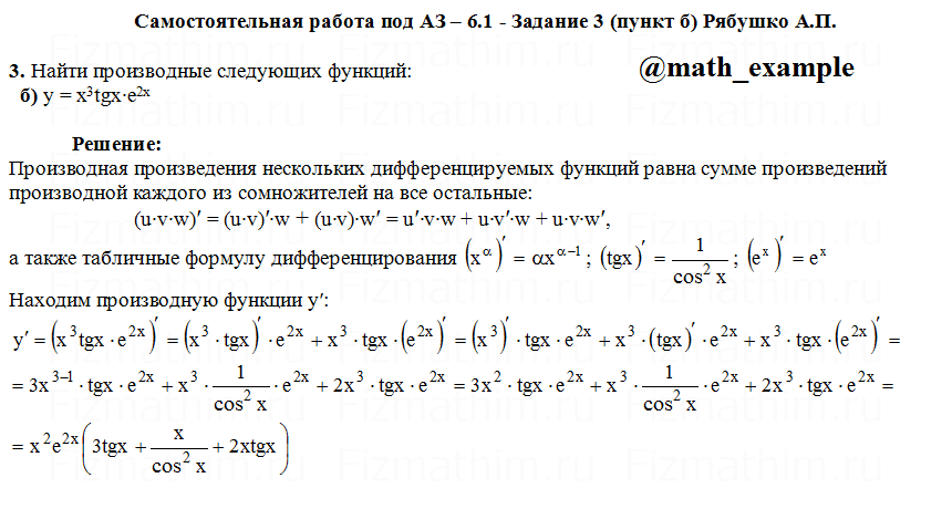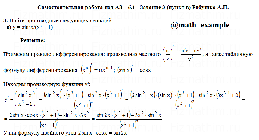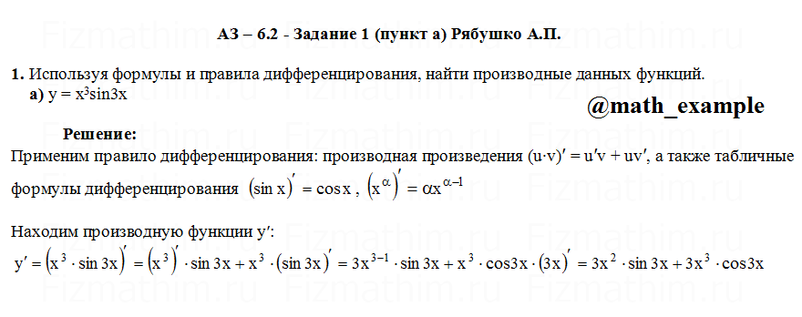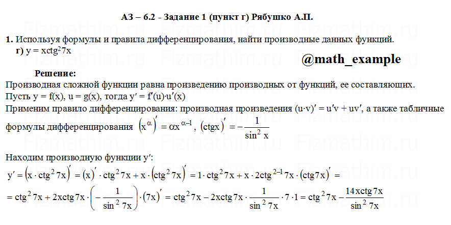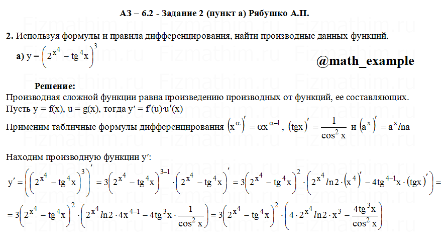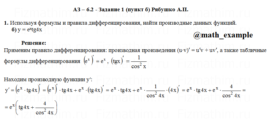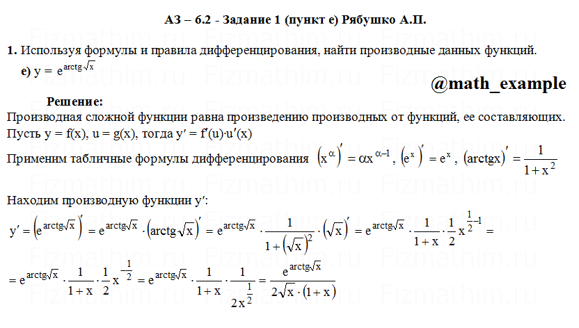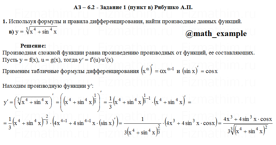 Решенные задания и примеры решений на тему дифференциальное исчисление, приложения