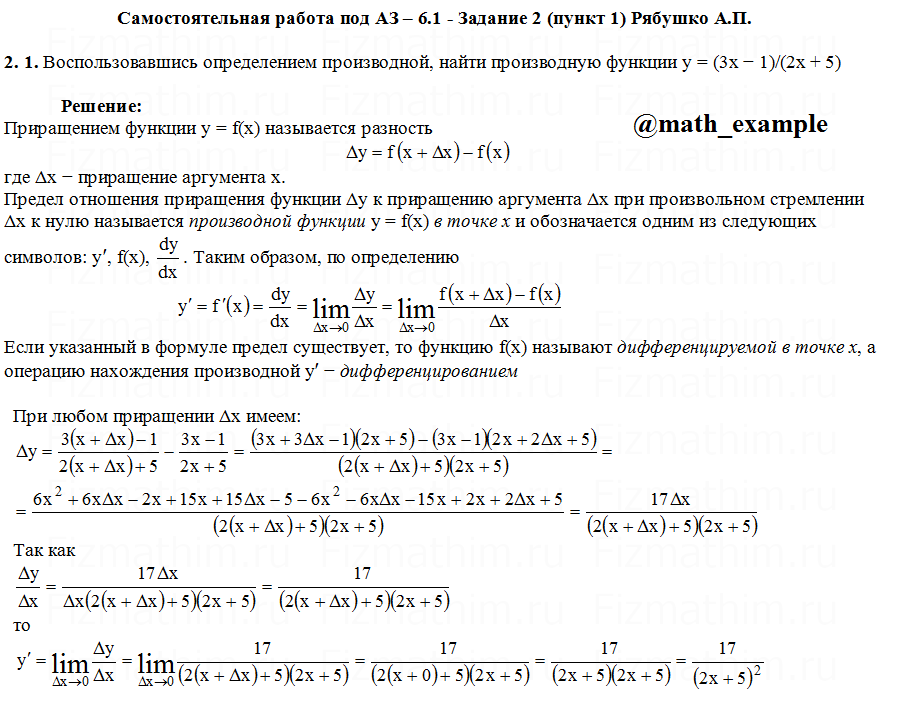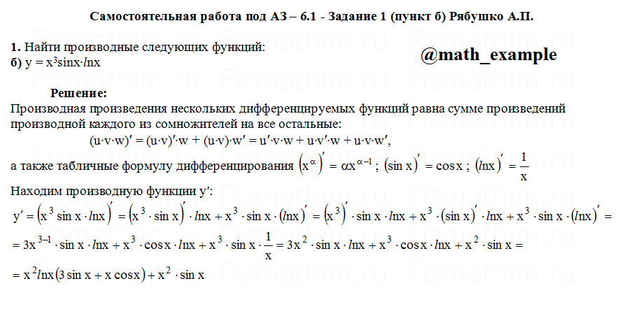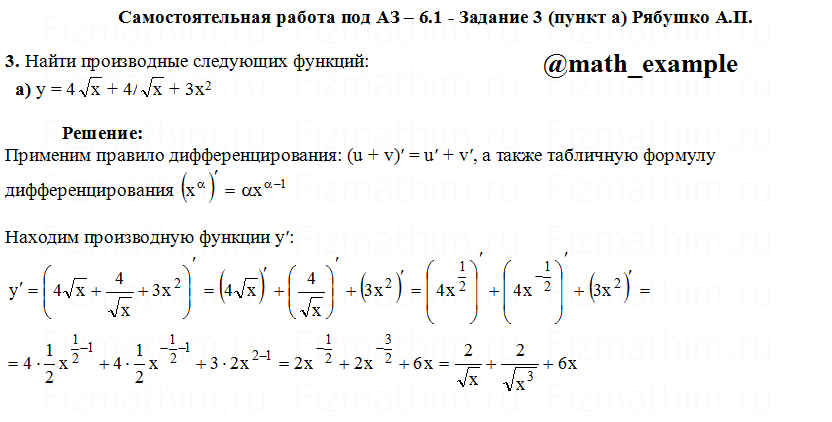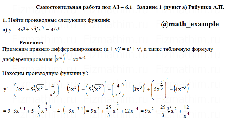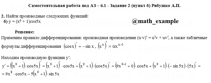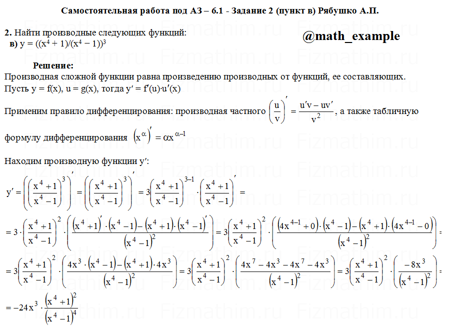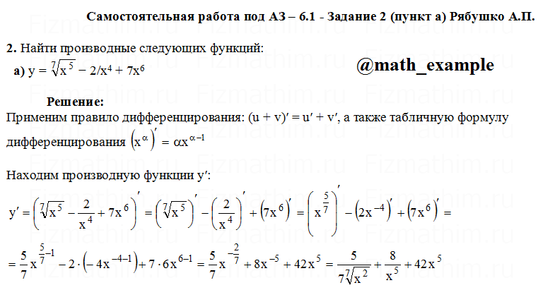 Решенные задания и примеры решений на тему дифференциальное исчисление, приложения