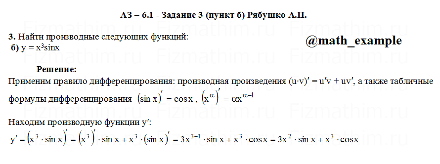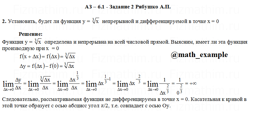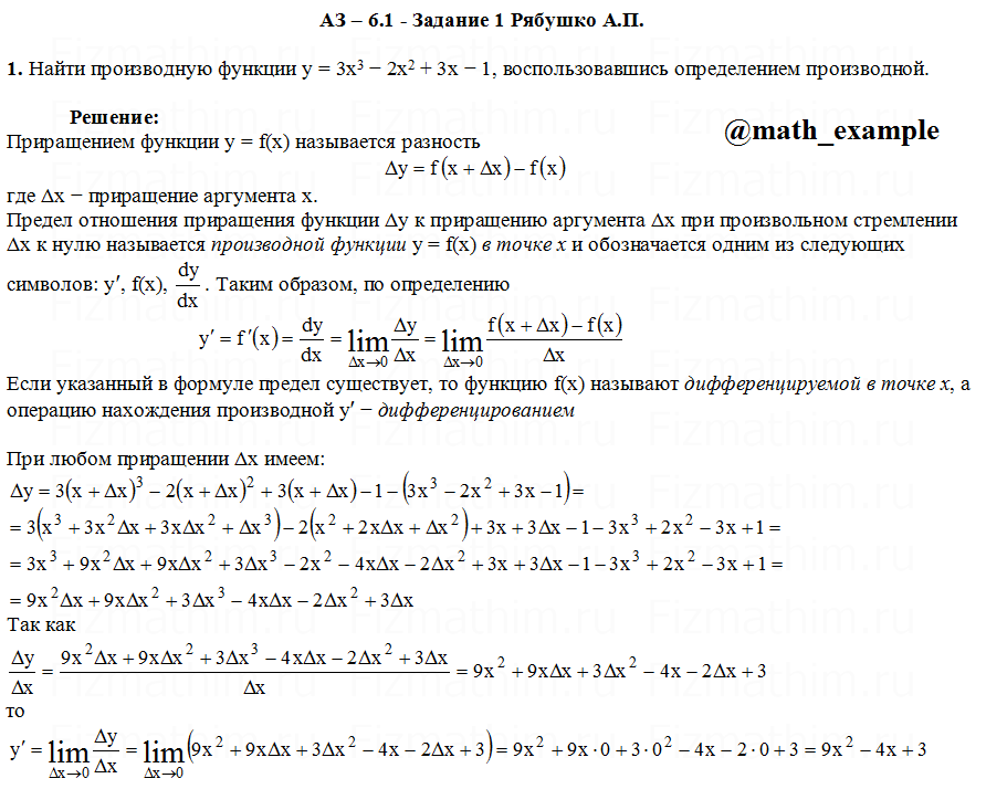 Решенные задания и примеры решений на тему дифференциальное исчисление, приложения