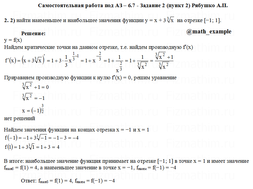 Решенные задания и примеры решений на тему дифференциальное исчисление, приложения