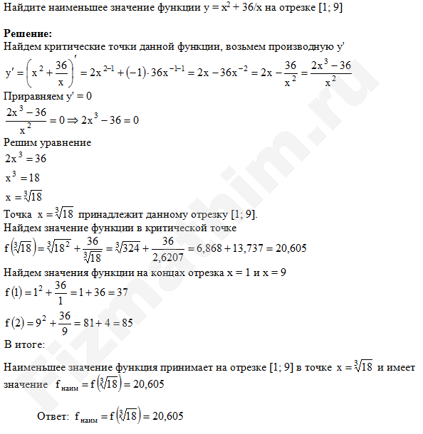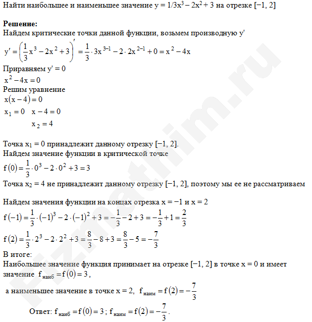 Экстремум, наибольшее и наименьшее значение функции примеры решенийГлавная » Фото решений » Производные. Приложения » Экстремум, наибольшее и наименьшее значение функции