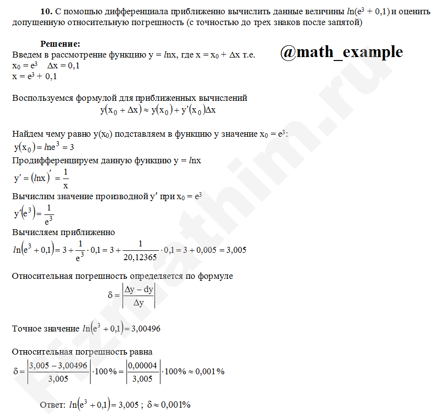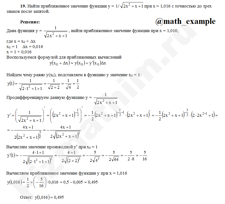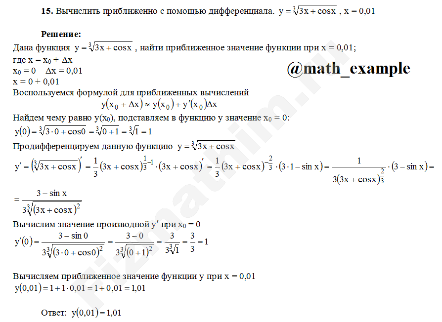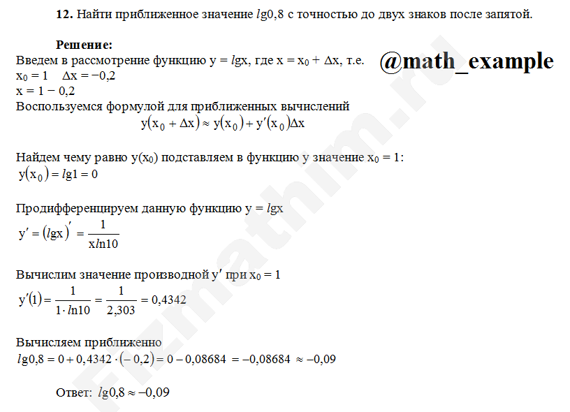 Приближенные вычисления с помощью производной примеры решений