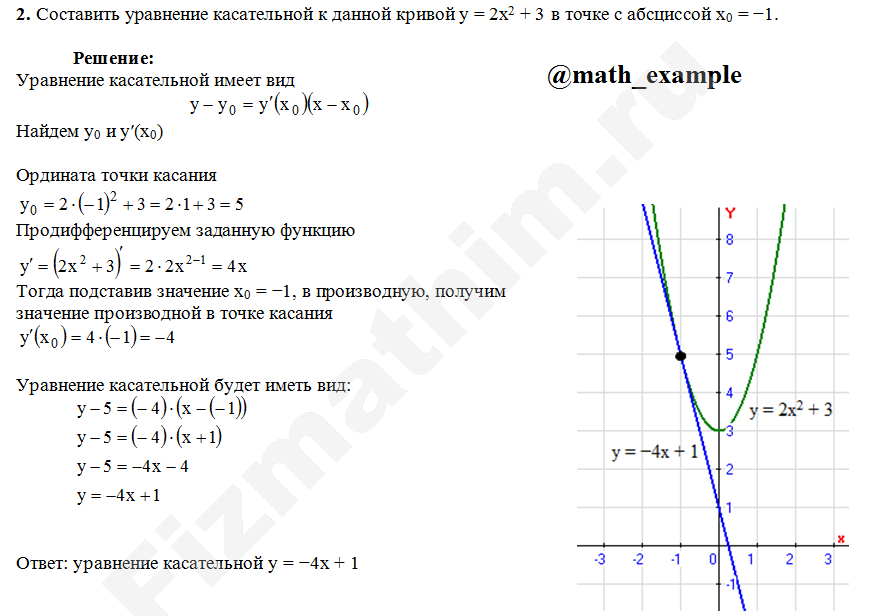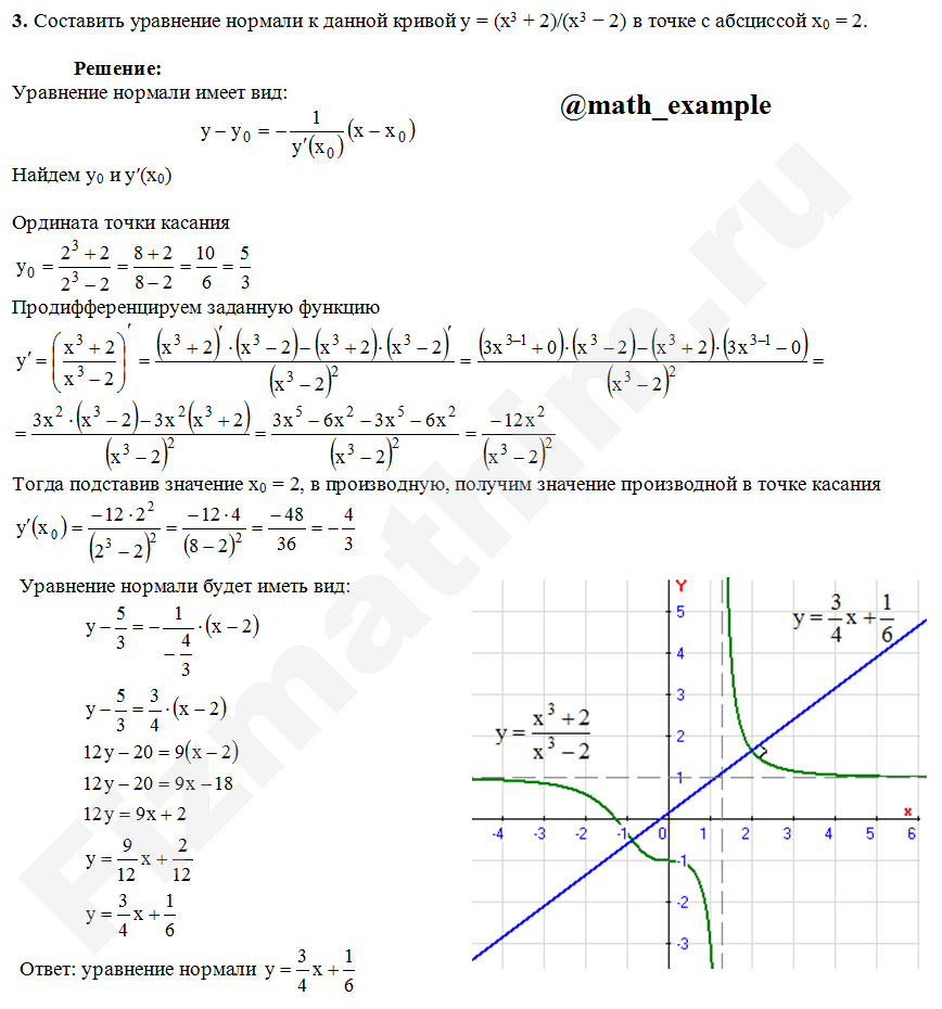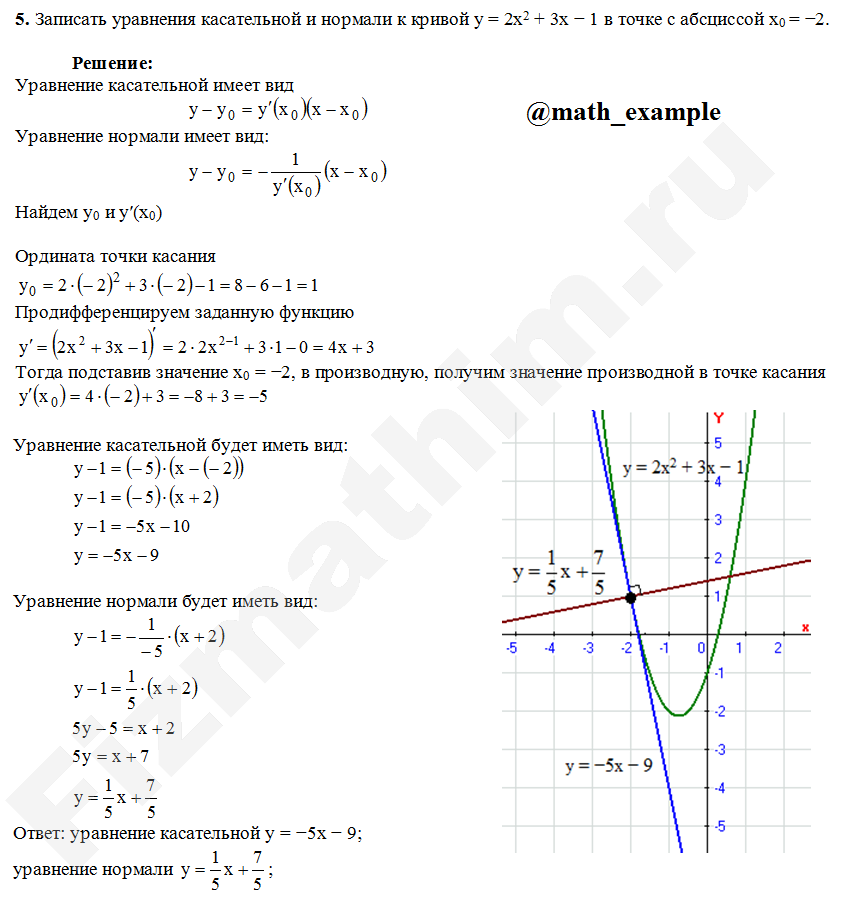 Задачи, уравнения касательной и нормали примеры решений