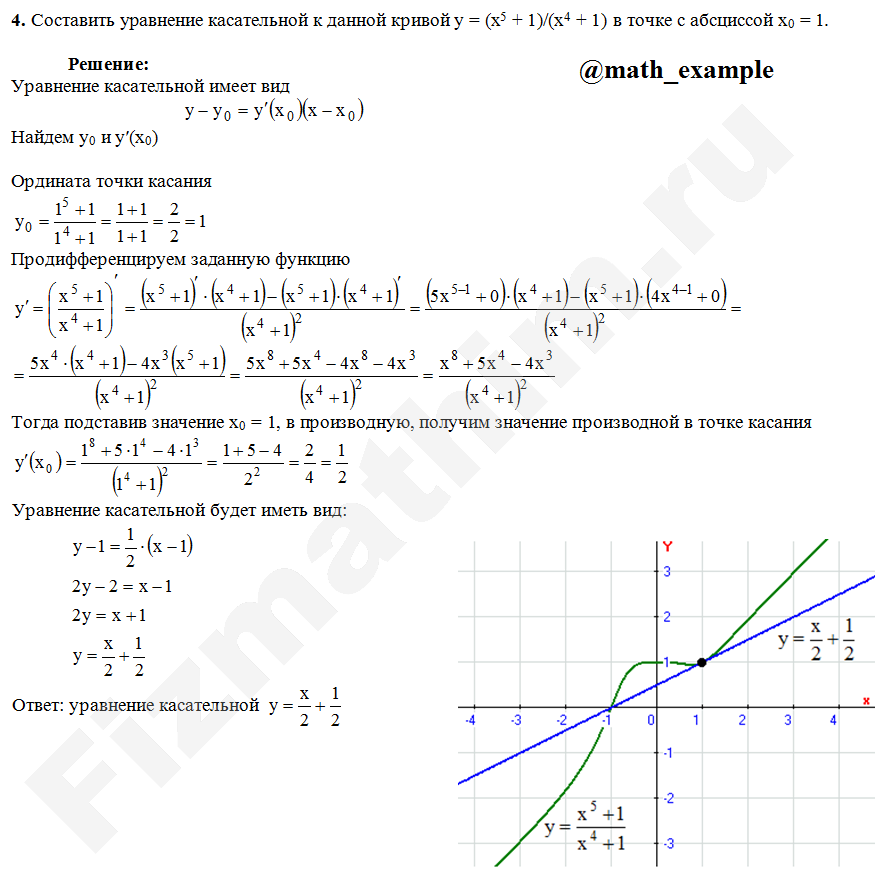 Главная » Фото решений » Производные. Приложения » Задачи, уравнения касательной и нормали