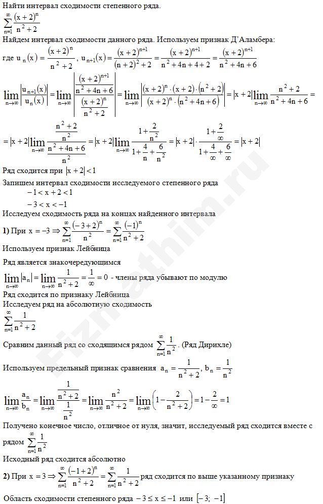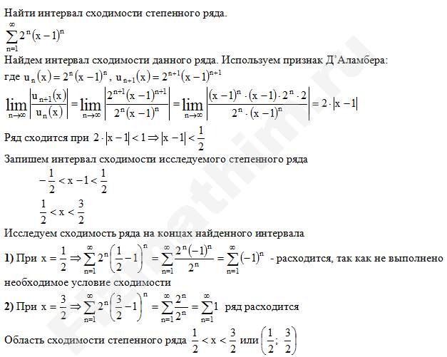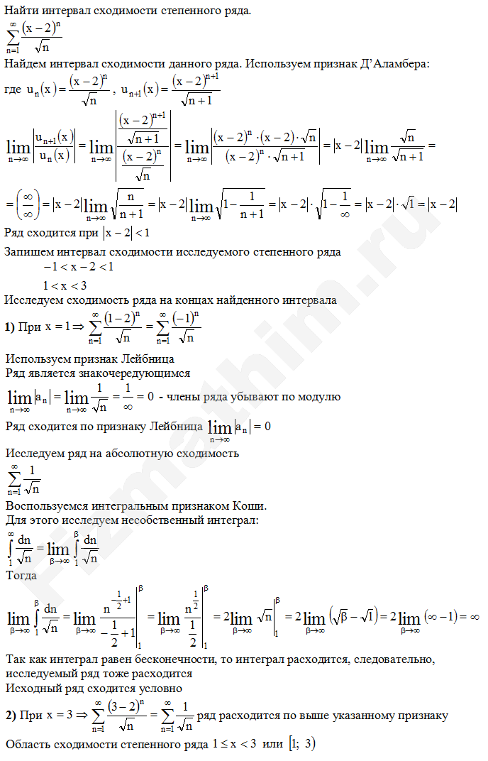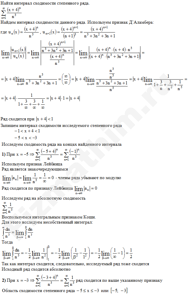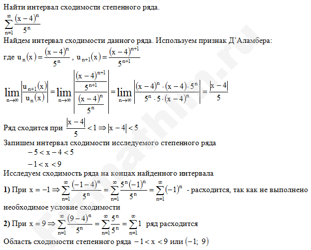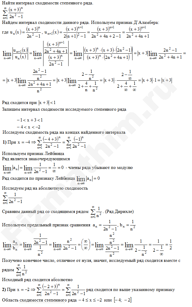 Интервал сходимости степенных рядов примеры решенийГлавная » Фото решений » Числовые ряды » Интервал сходимости степенных рядов