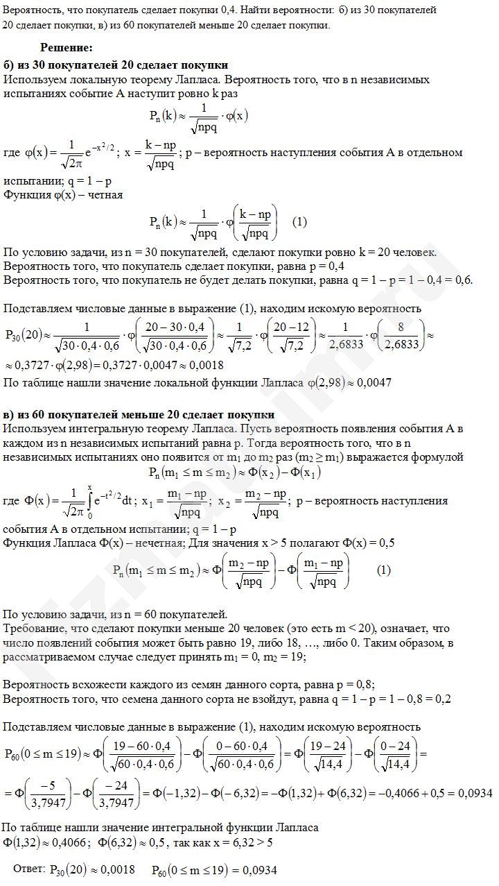 Решенные задания и примеры решений на тему Теория вероятностей и математическая статистика