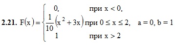 18. Теория вероятностей 18.5 Случайные величины. Общие законы распределения случайных величин. 18.6 Числовые характеристики случайных величин. ИДЗ 18.2 Вариант 21. Решебник Рябушко Часть 4 1. Найти закон распределения указанной дискретной CB X и ее функцию распределения F(x). Вычислить математическое ожидание M(X), дисперсию D(X) и среднее квадратичное отклонение σ(X). Построить график функции распределения F(x) 1.21. В первой студенческой группе из 24 человек 4 отличника, во второй из 22 – 3 отличника, в третьей из 24 – 6 отличников и в четвертой из 20 – 2 отличника; СВ X – число отличников, приглашенных на конференцию, при условии, что из каждой группы выделили случайным образом по одному человеку. 2. Дана функция распределения F(х) СВ X. Найти плотность распределения вероятностей f(x), математическое ожидание М(X), дисперсию D(X) и вероятность попадания СВ X на отрезок [а; b]. Построить графики функций F(х) и f(x). 3. Решить следующие задачи. 3.21. Производят взвешивание вещества без систематических ошибок. Случайная ошибка взвешивания распределена нормально с математическим ожиданием 20 кг и средним квадратичным отклонением 2 кг. Найти вероятность того, что следующее взвешивание отличается от математического ожидания не более чем на 100 г. 4. Решить следующие задачи. 4.21. Число телевизоров с плоским экраном составляет в среднем 40 % общего их выпуска. Пользуясь неравенством Чебышева, оценить вероятность того, что в партии из 500 телевизоров доля телевизоров с плоским экраном отклоняется от средней не более чем на 0,06. Подробное решение. Оформлено в Microsoft Word 2003 (Задание решено с использованием редактора формул) Решение задачи добавил: Massimo, Пятница, 29.07.2016
