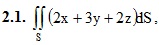 15. Элементы теории поля. 15.1 Векторная функция скалярного аргумента. Производная по направлению и градиент. 15.2 Скалярные и векторные поля 15.3 Поверхностные интегралы 15.4 Поток векторного поля через поверхность. Дивергенция векторного поля. ИДЗ 15.1 Вариант 1. Решебник Рябушко Часть 3 1. Дана функция u(M) = u(x, y, z) и точки M1, M2. Вычислить: 1) производную этой функции в точке M1 по направлению вектора M1M2; 2) grad u(M1) 1.1. u(M) = x2y + y2z + z2x, M1(1, −1, 2), M2(3, 4, −1) 2. Вычислить поверхностный интеграл первого рода по поверхности S, где S – часть плоскости (p), отсеченная координатными плоскостями. (p): x + 3y + z = 3 3. Вычислить поверхностный интеграл второго рода. где S – часть поверхности параболоида x = 9 – y2 – z2 (нормальный вектор n которой образует острый угол с ортом i), отсеченная плоскостью x = 0. 4. Вычислить поток векторного поля a(M) через внешнюю поверхность пирамиды, образуемую плоскостью (p) и координатными плоскостями, двумя способами: а) использовав определение потока; б) с помощью формулы Остроградского – Гаусса. 4.1. а(M) = 3xi + (y + z)j + (x – z)k, (p): x + 3y + z = 3 Подробное решение. Оформлено в Microsoft Word 2003 (Задание решено с использованием редактора формул) Решение задачи добавил: Massimo, Понедельник, 05.09.2016