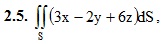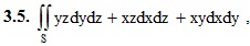 15. Элементы теории поля. 15.1 Векторная функция скалярного аргумента. Производная по направлению и градиент. 15.2 Скалярные и векторные поля 15.3 Поверхностные интегралы 15.4 Поток векторного поля через поверхность. Дивергенция векторного поля. ИДЗ 15.1 Вариант 5. Решебник Рябушко Часть 3 1. Дана функция u(M) = u(x, y, z) и точки M1, M2. Вычислить: 1) производную этой функции в точке M1 по направлению вектора M1M2; 2) grad u(M1) 1.5. u(M) = ln(xy + yz + xz), M1(−2, 3, −1), M2(2, 1, −3) 2. Вычислить поверхностный интеграл первого рода по поверхности S, где S – часть плоскости (p), отсеченная координатными плоскостями. (p): 2x + y + 2z = 2 3. Вычислить поверхностный интеграл второго рода. где S – верхняя сторона плоскости x + y + z = 4, отсеченной координатными плоскостями 4. Вычислить поток векторного поля a(M) через внешнюю поверхность пирамиды, образуемую плоскостью (p) и координатными плоскостями, двумя способами: а) использовав определение потока; б) с помощью формулы Остроградского – Гаусса. 4.5. а(M) = (y + 2z)i + (x + 2z)j + (x – 2y)k, (p): 2x + y + 2z = 2 Подробное решение. Оформлено в Microsoft Word 2003 (Задание решено с использованием редактора формул) Решение задачи добавил: Massimo, Среда, 07.09.2016