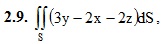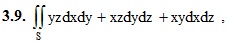 15. Элементы теории поля. 15.1 Векторная функция скалярного аргумента. Производная по направлению и градиент. 15.2 Скалярные и векторные поля 15.3 Поверхностные интегралы 15.4 Поток векторного поля через поверхность. Дивергенция векторного поля. ИДЗ 15.1 Вариант 9. Решебник Рябушко Часть 3 1. Дана функция u(M) = u(x, y, z) и точки M1, M2. Вычислить: 1) производную этой функции в точке M1 по направлению вектора M1M2; 2) grad u(M1) 1.9. u(M) = 3xy2 + z2 – xyz, M1(1, 1, 2), M2(3, –1, 4) 2. Вычислить поверхностный интеграл первого рода по поверхности S, где S – часть плоскости (p), отсеченная координатными плоскостями. (p): 2x – y – 2z = –2 3. Вычислить поверхностный интеграл второго рода. где S – наружная поверхность цилиндра x2 + y2 = 1, отсеченная плоскостями z = 0, z = 5 4. Вычислить поток векторного поля a(M) через внешнюю поверхность пирамиды, образуемую плоскостью (p) и координатными плоскостями, двумя способами: а) использовав определение потока; б) с помощью формулы Остроградского – Гаусса. 4.9. а(M) = (x + y)i + 3yj + (y – z)k, (p): 2x – y – 2z = –2 Подробное решение. Оформлено в Microsoft Word 2003 (Задание решено с использованием редактора формул) Решение задачи добавил: Massimo, Среда, 07.09.2016