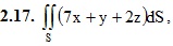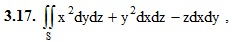 15. Элементы теории поля. 15.1 Векторная функция скалярного аргумента. Производная по направлению и градиент. 15.2 Скалярные и векторные поля 15.3 Поверхностные интегралы 15.4 Поток векторного поля через поверхность. Дивергенция векторного поля. ИДЗ 15.1 Вариант 17. Решебник Рябушко Часть 3 1. Дана функция u(M) = u(x, y, z) и точки M1, M2. Вычислить: 1) производную этой функции в точке M1 по направлению вектора M1M2; 2) grad u(M1) 1.17. u(M) = x – 2y + ez, M1(–4, –5, 0), M2(2, 3, 4) 2. Вычислить поверхностный интеграл первого рода по поверхности S, где S – часть плоскости (p), отсеченная координатными плоскостями. (p): 3x – 2y + 2z = 6 3. Вычислить поверхностный интеграл второго рода. где S – часть поверхности конуса z2 = x2 + y2 (нормальный вектор n которой образует острый угол с ортом k), отсекаемая плоскостями z = 0 и z = 3. 4. Вычислить поток векторного поля a(M) через внешнюю поверхность пирамиды, образуемую плоскостью (p) и координатными плоскостями, двумя способами: а) использовав определение потока; б) с помощью формулы Остроградского – Гаусса. 4.17. а(M) = (x + y)i + (y + z)j + 2(z + x)k, (p): 3x – 2y + 2z = 6 Подробное решение. Оформлено в Microsoft Word 2003 (Задание решено с использованием редактора формул) Решение задачи добавил: Massimo, Пятница, 09.09.2016