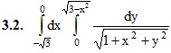 13. Кратные интегралы. 13.1 Двойные интегралы и их вычисление. 13.2 Замена переменных в двойном интеграле. Двойные интегралы в полярных координатах. 13.3 Приложения двойных интегралов. ИДЗ 13.1 Вариант 2. Решебник Рябушко Часть 3 1. Представить двойной интеграл в виде повторного интеграла с внешним интегрированием по х и внешним интегрированием по y, если область D задана указанными линиями. 1.2. D: x2 = 2y, 5x – 2y – 6 = 0 2. Вычислить двойной интеграл по области D, ограниченной указанными линиями. D: y = x2, y = 2x 3. Вычислить двойной интеграл, используя полярные координаты. 4. Вычислить площадь плоской области D, ограниченной заданными линями. 4.2. D: y = 6x2, x + y = 2, x ≥ 0 5. С помощью двойных интегралов вычислить в полярных координатах площадь плоской фигуры, ограниченной указанными линиями. 5.2. (x2 + y2)3 = a2x2y2 6. Вычислить объем тела, ограниченного заданными поверхностями. 6.2. z = 2 – (x2 + y2), x + 2y = 1, x ≥ 0, y ≥ 0, z ≥ 0 Подробное решение. Оформлено в Microsoft Word 2003 (Задание решено с использованием редактора формул) Решение задачи добавил: Massimo, Пятница, 28.10.2016