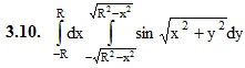 13. Кратные интегралы. 13.1 Двойные интегралы и их вычисление. 13.2 Замена переменных в двойном интеграле. Двойные интегралы в полярных координатах. 13.3 Приложения двойных интегралов. ИДЗ 13.1 Вариант 10. Решебник Рябушко Часть 3 1. Представить двойной интеграл в виде повторного интеграла с внешним интегрированием по х и внешним интегрированием по y, если область D задана указанными линиями. 1.10. D: x ≥ 0, y ≥ x, y = √9 − x2 2. Вычислить двойной интеграл по области D, ограниченной указанными линиями. D: y = x, y = 1/2x, x = 2 3. Вычислить двойной интеграл, используя полярные координаты. 4. Вычислить площадь плоской области D, ограниченной заданными линями. 4.10. D: y = x2 + 2, x ≥ 0, x = 2, y = x 5. С помощью двойных интегралов вычислить в полярных координатах площадь плоской фигуры, ограниченной указанными линиями. 5.10. (x2 + y2)2 = a2 (5x2 + 3y2) 6. Вычислить объем тела, ограниченного заданными поверхностями. 6.10. z = 4 – x2, x2 + y2 = 4, x ≥ 0, y ≥ 0, z ≥ 0 Подробное решение. Оформлено в Microsoft Word 2003 (Задание решено с использованием редактора формул) Решение задачи добавил: Massimo, Понедельник, 31.10.2016