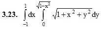 13. Кратные интегралы. 13.1 Двойные интегралы и их вычисление. 13.2 Замена переменных в двойном интеграле. Двойные интегралы в полярных координатах. 13.3 Приложения двойных интегралов. ИДЗ 13.1 Вариант 23. Решебник Рябушко Часть 3 1. Представить двойной интеграл в виде повторного интеграла с внешним интегрированием по х и внешним интегрированием по y, если область D задана указанными линиями. 1.23. D: y = 3 – x2, y = –x 2. Вычислить двойной интеграл по области D, ограниченной указанными линиями. D: x + y = 1, x + y = 2, x ≤ 1, x ≥ 0 3. Вычислить двойной интеграл, используя полярные координаты. 4. Вычислить площадь плоской области D, ограниченной заданными линями. 4.23. D: x = cosy, x ≤ y + 1, x ≥ 0 5. С помощью двойных интегралов вычислить в полярных координатах площадь плоской фигуры, ограниченной указанными линиями. 5.23. (x2 + y2)3 = 4a2xy (x2 – y2) 6. Вычислить объем тела, ограниченного заданными поверхностями. 6.23. y = 1 – z2, y = x, y = –x, y ≥ 0, z ≥ 0 Подробное решение. Оформлено в Microsoft Word 2003 (Задание решено с использованием редактора формул) Решение задачи добавил: Massimo, Суббота, 05.11.2016