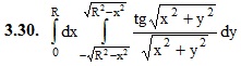 13. Кратные интегралы. 13.1 Двойные интегралы и их вычисление. 13.2 Замена переменных в двойном интеграле. Двойные интегралы в полярных координатах. 13.3 Приложения двойных интегралов. ИДЗ 13.1 Вариант 30. Решебник Рябушко Часть 3 1. Представить двойной интеграл в виде повторного интеграла с внешним интегрированием по х и внешним интегрированием по y, если область D задана указанными линиями. 1.30. D: x ≥ 0, y ≥ 0, y = 1, x = √4 − y2 2. Вычислить двойной интеграл по области D, ограниченной указанными линиями. D: y = lnx, y = 0, x = 2 3. Вычислить двойной интеграл, используя полярные координаты. 4. Вычислить площадь плоской области D, ограниченной заданными линями. 4.30. D: xy = 1, x2 = y, y = 2, x = 0. 5. С помощью двойных интегралов вычислить в полярных координатах площадь плоской фигуры, ограниченной указанными линиями. 5.30. ρ = asin3φ 6. Вычислить объем тела, ограниченного заданными поверхностями. 6.30. y2 = x, x = 3, z = x, z ≥ 0 Подробное решение. Оформлено в Microsoft Word 2003 (Задание решено с использованием редактора формул) Решение задачи добавил: Massimo, Суббота, 05.11.2016
