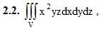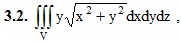 13. Кратные интегралы. 13.4 Тройной интеграл и его вычисление 13.5 Приложения тройных интегралов ИДЗ 13.2 Вариант 2. Решебник Рябушко Часть 3 1. Расставить пределы интегрирования в тройном интеграле если область V ограничена указанными поверхностями. Начертить область интегрирования 1.2. V: x = 1, y = 3x, y ≥ 0; z ≥ 0, z = 2(x2 + y2) 2. Вычислить данные тройные интегралы. V: −1 ≤ x ≤ 2, 0 ≤ y ≤ 3, 2 ≤ z ≤ 3 3. Вычислить тройной интеграл с помощью цилиндрических или сферических координат. , υ: z ≥ 0, z = 2, y ≥ ± x, z2 = 4(x2 + y2) 4. С помощью тройного интеграла вычислить объем тела, ограниченного указанными поверхностями. Сделать чертеж. 4.2. z = 4 – y2, x2 + y2 = 4, z ≥ 0 Подробное решение. Оформлено в Microsoft Word 2003 (Задание решено с использованием редактора формул) Решение задачи добавил: Massimo, Суббота, 12.11.2016