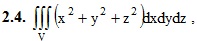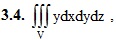 13. Кратные интегралы. 13.4 Тройной интеграл и его вычисление 13.5 Приложения тройных интегралов ИДЗ 13.2 Вариант 4. Решебник Рябушко Часть 3 1. Расставить пределы интегрирования в тройном интеграле если область V ограничена указанными поверхностями. Начертить область интегрирования 1.4. V: x = 3, y = x, y ≥ 0; z ≥ 0, z = 3x2 + y2 2. Вычислить данные тройные интегралы. V: 0 ≤ x ≤ 3, −1 ≤ y ≤ 2, 0 ≤ z ≤ 2 3. Вычислить тройной интеграл с помощью цилиндрических или сферических координат. , υ: x2 + y2 + z2 = 32, y2 = x2 + z2, y ≥ 0 4. С помощью тройного интеграла вычислить объем тела, ограниченного указанными поверхностями. Сделать чертеж. 4.4. z = y2, x ≥ 0, z ≥ 0, x + y = 2 Подробное решение. Оформлено в Microsoft Word 2003 (Задание решено с использованием редактора формул) Решение задачи добавил: Massimo, Суббота, 12.11.2016