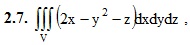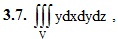 13. Кратные интегралы. 13.4 Тройной интеграл и его вычисление 13.5 Приложения тройных интегралов ИДЗ 13.2 Вариант 7. Решебник Рябушко Часть 3 1. Расставить пределы интегрирования в тройном интеграле если область V ограничена указанными поверхностями. Начертить область интегрирования 1.7. V: x ≥ 0, y = 2x, y = 1; z ≥ 0, x + y + z =3 2. Вычислить данные тройные интегралы. V: 1 ≤ x ≤ 5, 0 ≤ y ≤ 2, −1 ≤ z ≤ 0 3. Вычислить тройной интеграл с помощью цилиндрических или сферических координат. , υ: z = √8 − x2 − y2, z = √x2 + y2, y ≥ 0 4. С помощью тройного интеграла вычислить объем тела, ограниченного указанными поверхностями. Сделать чертеж. 4.7. z ≥ 0, z = x2, x – 2y + 2 = 0, x + y = 7 Подробное решение. Оформлено в Microsoft Word 2003 (Задание решено с использованием редактора формул) Решение задачи добавил: Massimo, Воскресенье, 13.11.2016