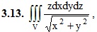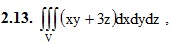 13. Кратные интегралы. 13.4 Тройной интеграл и его вычисление 13.5 Приложения тройных интегралов ИДЗ 13.2 Вариант 13. Решебник Рябушко Часть 3 1. Расставить пределы интегрирования в тройном интеграле если область V ограничена указанными поверхностями. Начертить область интегрирования 1.13. V: x ≥ 0, y = 3x, y = 3, z ≥ 0, z = 2(x2 + y2) 2. Вычислить данные тройные интегралы. V: −1 ≤ x ≤ 1, 0 ≤ y ≤ 1, 1 ≤ z ≤ 2 3. Вычислить тройной интеграл с помощью цилиндрических или сферических координат. , υ: x2 + y2 = 4y, y + z = 4, z ≥ 0 4. С помощью тройного интеграла вычислить объем тела, ограниченного указанными поверхностями. Сделать чертеж. 4.13. y ≥ 0, z ≥ 0, x = 3, y = 2x, z = y2 Подробное решение. Оформлено в Microsoft Word 2003 (Задание решено с использованием редактора формул) Решение задачи добавил: Massimo, Вторник, 15.11.2016