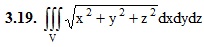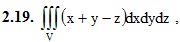 13. Кратные интегралы. 13.4 Тройной интеграл и его вычисление 13.5 Приложения тройных интегралов ИДЗ 13.2 Вариант 19. Решебник Рябушко Часть 3 1. Расставить пределы интегрирования в тройном интеграле если область V ограничена указанными поверхностями. Начертить область интегрирования 1.19. V: x ≥ 0, y ≥ 0, z ≥ 0, x + y = 1, z = 3x2 + 2y2 2. Вычислить данные тройные интегралы. V: 0 ≤ x ≤ 4, 1 ≤ y ≤ 3, −1 ≤ z ≤ 5 3. Вычислить тройной интеграл с помощью цилиндрических или сферических координат. , υ: x2 + y2 + z2 = 36, y ≥ 0, z ≥ 0, y ≤ −x 4. С помощью тройного интеграла вычислить объем тела, ограниченного указанными поверхностями. Сделать чертеж. 4.19. y ≥ 0, z ≥ 0, x + y = 2, z = x2 Подробное решение. Оформлено в Microsoft Word 2003 (Задание решено с использованием редактора формул) Решение задачи добавил: Massimo, Четверг, 17.11.2016