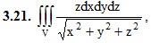 13. Кратные интегралы. 13.4 Тройной интеграл и его вычисление 13.5 Приложения тройных интегралов ИДЗ 13.2 Вариант 21. Решебник Рябушко Часть 3 1. Расставить пределы интегрирования в тройном интеграле если область V ограничена указанными поверхностями. Начертить область интегрирования 1.21. V: x ≥ 0, y ≥ 0, z ≥ 0, x + y = 2, z = 4 – x2 – y2 2. Вычислить данные тройные интегралы. V: 0 ≤ x ≤ 1, 0 ≤ y ≤ 1, −1 ≤ z ≤ 3 3. Вычислить тройной интеграл с помощью цилиндрических или сферических координат. , υ: 1 ≤ x2 + y2 + z2 ≤ 9, y ≥ 0, y ≤ 1/√3x, z ≥ 0 4. С помощью тройного интеграла вычислить объем тела, ограниченного указанными поверхностями. Сделать чертеж. 4.21. z ≥ 0, x2 + y2 = 9, z = y2 Подробное решение. Оформлено в Microsoft Word 2003 (Задание решено с использованием редактора формул) Решение задачи добавил: Massimo, Пятница, 18.11.2016