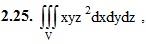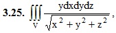 13. Кратные интегралы. 13.4 Тройной интеграл и его вычисление 13.5 Приложения тройных интегралов ИДЗ 13.2 Вариант 25. Решебник Рябушко Часть 3 1. Расставить пределы интегрирования в тройном интеграле если область V ограничена указанными поверхностями. Начертить область интегрирования 1.25. V: x = 2, y ≥ 0, z ≥ 0, y = 3x, z = 4(x2 + y2) 2. Вычислить данные тройные интегралы. V: 0 ≤ x ≤ 2, −1 ≤ y ≤ 0, 0 ≤ z ≤ 4 3. Вычислить тройной интеграл с помощью цилиндрических или сферических координат. , υ: 4 ≤ x2 + y2 + z2 ≤ 16, y ≤ √3x, y ≥ 0, z ≥ 0 4. С помощью тройного интеграла вычислить объем тела, ограниченного указанными поверхностями. Сделать чертеж. 4.25. z ≥ 0, y + z = 2, x2 + y2 = 4 Подробное решение. Оформлено в Microsoft Word 2003 (Задание решено с использованием редактора формул) Решение задачи добавил: Massimo, Суббота, 19.11.2016