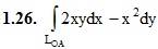 14. Криволинейные интегралы. 14.1 Криволинейные интегралы и их вычисление Криволинейные интегралы первого рода (по длине дуги) Криволинейные интегралы второго рода (по координатам) ИДЗ 14.1 Вариант 26. Решебник Рябушко Часть 3 1. Вычислить данные криволинейные интегралы (1-4) , где LOA – дуга параболы y = x2/4 от точки O(0, 0) до точки A(2, 1). , где L – дуга параболы y2 = 2x, отсеченная параболой x2 = 2y. , где L – первая арка циклоиды x = 3(t – sint), y = 3(1 – cost). , где LAB – любая линия от точки А(π/4, 2) до точки B(π/6, 1). Подробное решение. Оформлено в Microsoft Word 2003 (Задание решено с использованием редактора формул) Решение задачи добавил: Massimo, Четверг, 15.12.2016