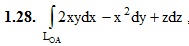 14. Криволинейные интегралы. 14.1 Криволинейные интегралы и их вычисление Криволинейные интегралы первого рода (по длине дуги) Криволинейные интегралы второго рода (по координатам) ИДЗ 14.1 Вариант 28. Решебник Рябушко Часть 3 1. Вычислить данные криволинейные интегралы (1-4) , где LOA – отрезок прямой, соединяющий точки O(0, 0, 0) и A(2, 1, –1) , где L – первая четверть окружности ρ = 2. , где L – первый виток винтовой линии x = 9cost, y = 9sint, z = 9t. , где LAB – дуга параболы y = x2 от точки A(–1, 1) до точки B(1, 1). Подробное решение. Оформлено в Microsoft Word 2003 (Задание решено с использованием редактора формул) Решение задачи добавил: Massimo, Четверг, 15.12.2016