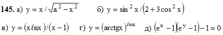 Методические указания и контрольные задания (с программой) для студентов-заочников инженерно-технических специальностей высших учебных заведений Скачать файл 4. Производная и ее приложения Готовое решение задачи. Решебник Арутюнова. Задание №145. 141 – 150. Найти производные dy/dx данных функций Подробное решение. Оформлено в Microsoft Word 2003 (Задание решено с использованием редактора формул) Если у вас похожее задание, прорешаю на заказ, пишите мне на почту. Решение задачи добавил: Massimo, Четверг, 17.08.2017