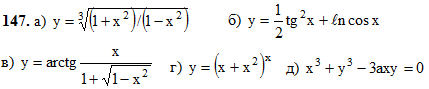 Методические указания и контрольные задания (с программой) для студентов-заочников инженерно-технических специальностей высших учебных заведений Скачать файл 4. Производная и ее приложения Готовое решение задачи. Решебник Арутюнова. Задание №147. 141 – 150. Найти производные dy/dx данных функций Подробное решение. Оформлено в Microsoft Word 2003 (Задание решено с использованием редактора формул) Если у вас похожее задание, прорешаю на заказ, пишите мне на почту. Решение задачи добавил: Massimo, Четверг, 17.08.2017