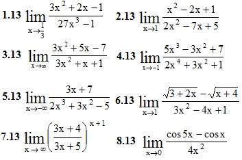 Заказ N0015 Математика Математический анализ Найти пределы указанных функций