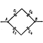 Конденсаторы электроемкостями C1=0,2 мкФ С2=0,6 мкФ С3=0,3 мкФ С4=0,5 мкФ соединены так как это указано на рис. Разность потенциалов U между точками А и В равна 320 В Определить разность потенциалов