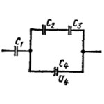 Конденсаторы электроемкостями С1=2 мкФ С2=2 мкФ С3=3 мкФ и С4=1 мкФ соединены так как это показано на рис Разность потенциалов на обкладках четвертого конденсатора U4=100 В Найти заряды и разности пот