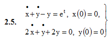 16. Операционное исчисление. 16.2 Нахождение оригиналов по изображениям 16.3 Приложения операционного исчисления ИДЗ 16.2 Вариант 5. Решебник Рябушко Часть 4 1. Решить операторным методом линейное дифференциальное уравнение αẍ + βẋ + γx = f(t), x(t0) = A, ẋ(t0) = B Функцию f(t) и значения коэффициентов α, β, γ, t0, x(t0), ẋ(t0) взять из табл. 16.4 1.5. α = 1, β = −2, γ = 2, f(t) = 1, t0 = 0, x(t0) = 0, ẋ(t0) = 0 1.5.ẍ − 2ẋ + 2x = 1, x(0) = 0, ẋ(0) = 0 2. Решить операторным методом систему линейных дифференциальных уравнений Функции f1(t), f2(t) и значения ak, bk, ck, dk (k=1, 2), A, B, x(0), y(0) взять из табл. 16.5 2.5. a1 = 1, b1 = 1, c1 = 0, d1 = −1, f1(t) = et, a2 = 2, b2 = 1, c2 = 0, d2 = 2, f2(t) = 0, x(0) = 0, y(0) = 0 Подробное решение. Оформлено в Microsoft Word 2003 (Задание решено с использованием редактора формул) Решение задачи добавил: Massimo, Суббота, 19.11.2022