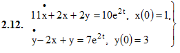 16. Операционное исчисление. 16.2 Нахождение оригиналов по изображениям 16.3 Приложения операционного исчисления ИДЗ 16.2 Вариант 12. Решебник Рябушко Часть 4 1. Решить операторным методом линейное дифференциальное уравнение αẍ + βẋ + γx = f(t), x(t0) = A, ẋ(t0) = B Функцию f(t) и значения коэффициентов α, β, γ, t0, x(t0), ẋ(t0) взять из табл. 16.4 1.12. α = 1, β = 0, γ = 1, f(t) = −2sint, t0 = π/2, x(t0) = 0, ẋ(t0) = 1 1.12. ẍ + x = −2sint, x(π/2) = 0, ẋ(π/2) = 1 2. Решить операторным методом систему линейных дифференциальных уравнений Функции f1(t), f2(t) и значения ak, bk, ck, dk (k=1, 2), A, B, x(0), y(0) взять из табл. 16.5 2.12. a1 = 11, b1 = 0, c1 = 2, d1 = 2, f1(t) = 10e2t, a2 = 0, b2 = 1, c2 = −2, d2 = 1, f2(t) = 7e2t, x(0) = 1, y(0) = 3 Подробное решение. Оформлено в Microsoft Word 2003 (Задание решено с использованием редактора формул) Решение задачи добавил: Massimo, Понедельник, 21.11.2022