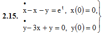 16. Операционное исчисление. 16.2 Нахождение оригиналов по изображениям 16.3 Приложения операционного исчисления ИДЗ 16.2 Вариант 15. Решебник Рябушко Часть 4 1. Решить операторным методом линейное дифференциальное уравнение αẍ + βẋ + γx = f(t), x(t0) = A, ẋ(t0) = B Функцию f(t) и значения коэффициентов α, β, γ, t0, x(t0), ẋ(t0) взять из табл. 16.4 1.15. α = 1, β = 6, γ = 13, f(t) = 4e−3t, t0 = 0, x(t0) = 0, ẋ(t0) = 0 1.15. ẍ + 6ẋ + 13x = 4e−3t, x(0) = 0, ẋ(0) = 0 2. Решить операторным методом систему линейных дифференциальных уравнений Функции f1(t), f2(t) и значения ak, bk, ck, dk (k=1, 2), A, B, x(0), y(0) взять из табл. 16.5 2.15. a1 = 1, b1 = 0, c1 = −1, d1 = −1, f1(t) = et, a2 = 0, b2 = 1, c2 = −3, d2 = 1, f2(t) = 0, x(0) = 0, y(0) = 0 Подробное решение. Оформлено в Microsoft Word 2003 (Задание решено с использованием редактора формул) Решение задачи добавил: Massimo, Понедельник, 21.11.2022