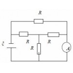Найти показание амперметра в схеме представленной на рисунке Сопротивления амперметра и источника пренебрежимо малы R = 10 Ом ξ = 30В
