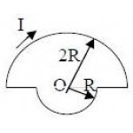 По плоскому контуру из тонкого провода течет ток I=100 А Определить магнитную индукцию B поля создаваемого этим током в точке О Радиус R изогнутой части контура равен 20 см