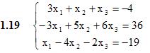 ИДЗ 1.2 Вариант 19. Решения Рябушко Сборник задач №11. Проверить совместность системы уравнений и в случае совместности решить ее: а) по формулам Крамера; б) с помощью обратной матрицы (матричным методом); в) методом Гаусса. 2. Проверить совместность системы уравнений и в случае совместности решить ее: а) по формулам Крамера; б) с помощью обратной матрицы (матричным методом); в) методом Гаусса. 3. Решить однородную систему линейных алгебраических уравнений. 4. Решить однородную систему линейных алгебраических уравнений. Подробное решение. Оформлено в Microsoft Word 2003 Решение задачи добавил: Massimo, Воскресенье, 16.06.2013