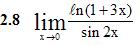 5. Функции. Пределы. Непрерывность функций. 5.5 Сравнение бесконечно малых функций. Непрерывность функций. ИДЗ 5.2 Вариант 8. Решебник Рябушко Часть 1 1. Доказать, что функции f(x) и φ(x) при x→0 являются бесконечно малыми одного порядка малости. 1.8 f(x)=sinx + sin5x, φ(x)=2x 2. Найти пределы, используя эквивалентные бесконечно малые функции. Используя таблицу эквивалентных бесконечно малых. 3. Исследовать данные функции на непрерывность и построить их графики. 4. Исследовать данные функции на непрерывность в указанных точках. Подробное решение. Оформлено в Microsoft Word 2003 (Задание решено с использованием редактора формул) Решение задачи добавил: Massimo, Воскресенье, 28.07.2013