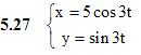 4. Линии и поверхности 4.1 Линии второго порядка. Линии, заданные уравнениями в полярных координатах и параметрическими уравнениями. ИДЗ 4.1 Вариант 27. Решебник Рябушко Сборник задач №11. Составить канонические уравнения: а) эллипса; б) гиперболы; в) параболы (А,В – точки, лежащие на кривой, F – фокус, а – большая (действительная) полуось, b – малая (мнимая) полуось, ε – эксцентриситет, y=±kx – уравнения асимптот гиперболы, D – директриса кривой, 2c – фокусное расстояние1.27 a) A(−3, 0), B(1, √40/3); б) k = √2/√3, ε = √15/3; в) D: y = 4 2. Записать уравнение окружности, проходящей через указанные точки и имеющей центр в точке А. 2.27 Фокусы гиперболы 4x2 – 5y2 = 20, A(0, –6) 3. Составить уравнение линии, каждая точка М которой удовлетворяет заданным условиям. 3.27 Отстоит от прямой x = − 7 на расстоянии, в три раза меньшем, чем от точки A(3, 1) 4. Построить кривую, заданную уравнением в полярной системе координат. 4.27 ρ = 3cos2φ 5. Построить кривую, заданную параметрическими уравнениями (0 ≤ t ≤ 2π) Подробное решение. Оформлено в Microsoft Word 2003 (Задание решено с использованием редактора формул) Решение задачи добавил: Massimo, Воскресенье, 15.09.2013
